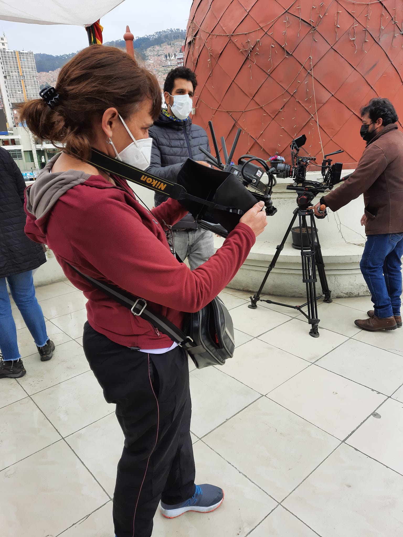 Rodaje en La Paz Bolivia de mi documental Sebastian Moro, el caminante, equipo Fundacion Ukamau