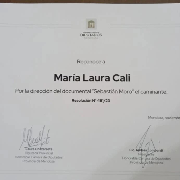 Declaración de interés en Mendoza. No hay palabras que puedan expresar el agradecimiento al apoyo recibido. Se lo dedicamos a todo el equipo que creyó en este proyecto. Cuando comenzamos en aquel diciembre de 2019 con el dolor a cuestas necesitando narrar su historia. Gracias diputada Laura Chazarreta por su esfuerzo incansablemente. Gracias Raquel Rocchietti, Melody Moro, Penélope Moro Rocchietti Gracias a todxs realmente. Seguimos ! Por Memoria Verdad y Justicia