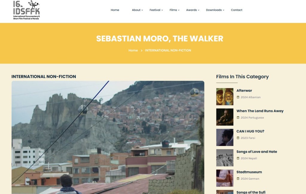«Sebastián Moro, el caminante» participa en competencia internacional en IDSFFK