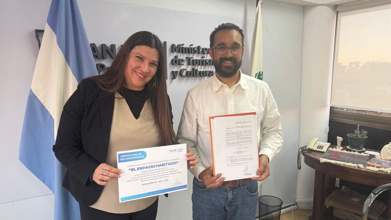 Declaración de Interés- Documental. En el día de ayer nuestra productora en San Luis Andrea Breninato recibió de manos del Ministro de Turismo y Cultura de la provincia el Sr. Juan José Alvarez Pinto un diploma de declaración de interés para nuestro documental «El espacio habitado». Estamos muy agradecidos y contentos por este reconocimiento y apoyo. Lo compartimos especialmente con todo nuestro equipo de San Luis que puso lo mejor para llevar adelante el rodaje. También a nuestro equipo en Bs As que viene trabajando y apostando por este trabajo íntimo sobre la memoria y los recuerdos. A quienes participaron amigxs, mi hermana Claudia y todos los que colaboraron. ¡GRACIAS !